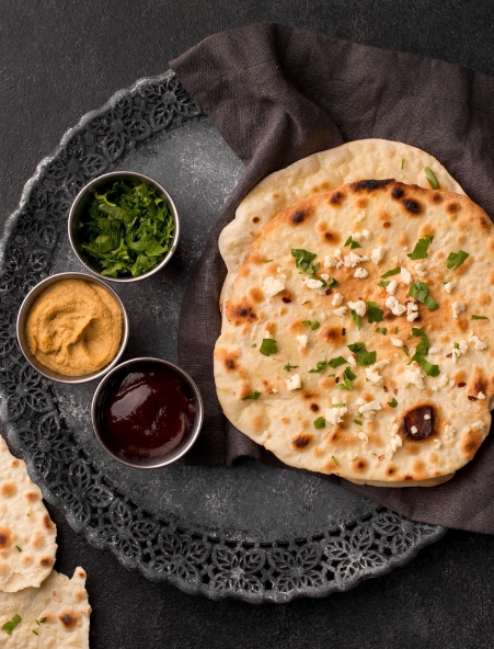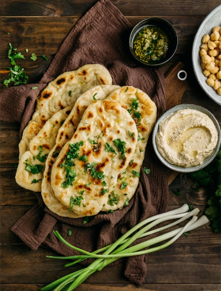 Soft and fluffy bread baked in a clay oven. Perfect for scooping up curry or enjoying with tandoori dishes. A true staple of Indian dining.